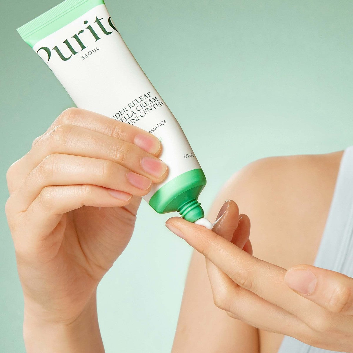 La Wonder Releaf Centella Cream Unscented de Purito est une crème hydratante apaisante formulée à base de Centella Asiatica. Sans parfum, elle calme les irritations, hydrate intensément et renforce la barrière cutanée, idéale pour les peaux sensibles et réactives.