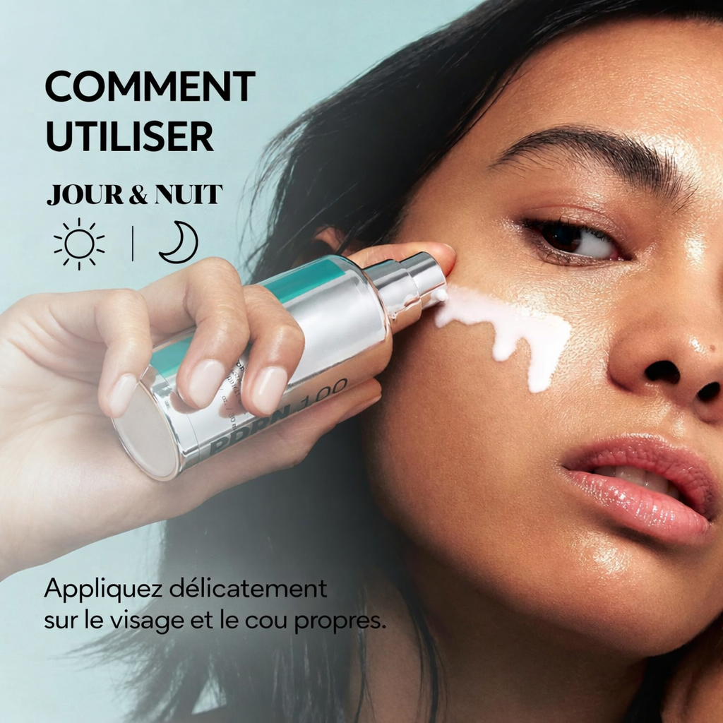 Après le nettoyage et l’application du tonique, appliquez une pression d’essence sur le visage et le cou. Tapote délicatement jusqu’à absorption complète. Utilise matin et soir, avant la crème hydratante.