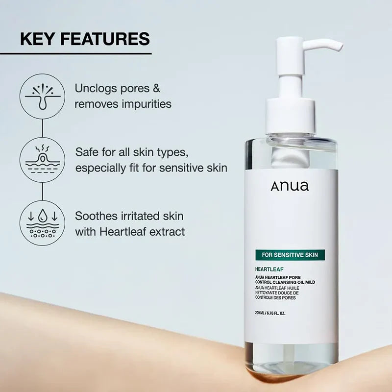 L’Huile nettoyante Heartleaf Pore Control (version douce) est une huile démaquillante apaisante à l’extrait de houttuynia cordata, qui purifie les pores en éliminant maquillage, crème solaire et impuretés tout en calmant et hydratant les peaux sensibles.