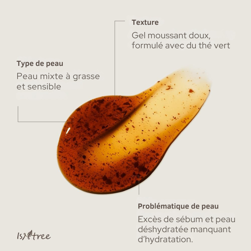Le Gel nettoyant au thé vert de Jeju signé Isntree élimine l’excès de sébum et les impuretés tout en préservant l’hydratation naturelle de la peau. Enrichi en extrait de thé vert apaisant et en 4 types d’acide hyaluronique, il laisse la peau nette, douce et rafraîchie, sans tiraillement.